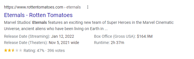 Rotten Tomatoes is able to include details about a movie’s rating, release date, box office revenue, and runtime: