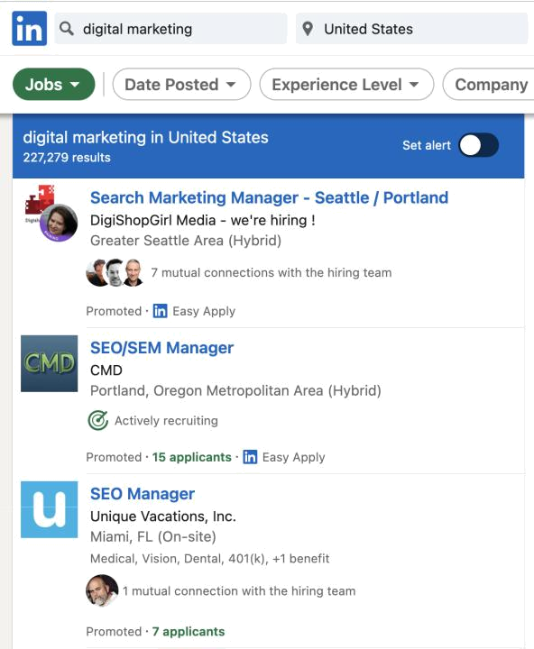 Organic visibility is the most sought-after marketing channel out there. In fact, if you search Linkedin Jobs for “Digital Marketing”, the results page is dominated by SEO job openings: