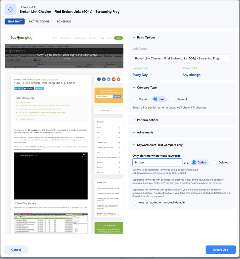 Another tool that is helpful for picking your timing is Visualping that offers a cool SEO monitoring feature allowing you to monitor your competitors’ landing pages to be the first to know when they put up their holiday promos.