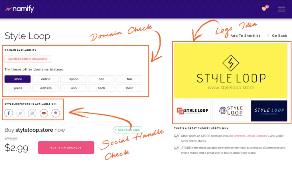 Namify is a cool free app that I use any time I am planning to start a new venture. You need to type your target keyword and choose your niche, and the tool will generate a list of names that will be easy to remember and create topical associations. With each brand name, you will get a free logo: