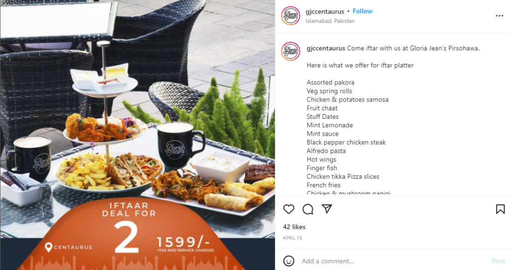 Gloria Jeans is an international coffee shop. Here in this post, you see they are using location tags to help visitors know where they can benefit from this fantastic offer!
