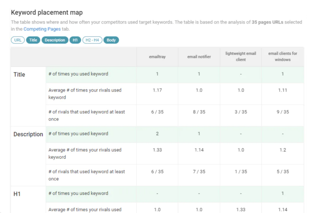 This will give you an idea of what your content should look like and how to make more productive and focused decisions when writing yours. WebCEO allows you to analyze your competitors’ content and creates a detailed keyword map informing you where your article is probably missing. This makes your team’s job much as easier as they write and optimize their articles:
