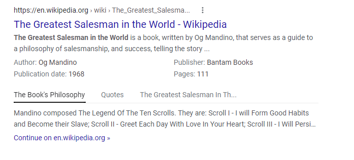 Wikipedia adds book details, like the author, publication date, publisher, and page count. You can even scroll through details about the book such as philosophy and quotes:
