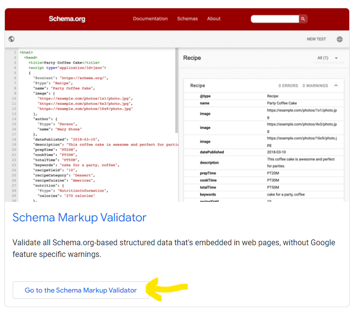 You’ll have the option to view the Rich Results Test tool, or Schema.org Markup Validator. Click on the Validator.