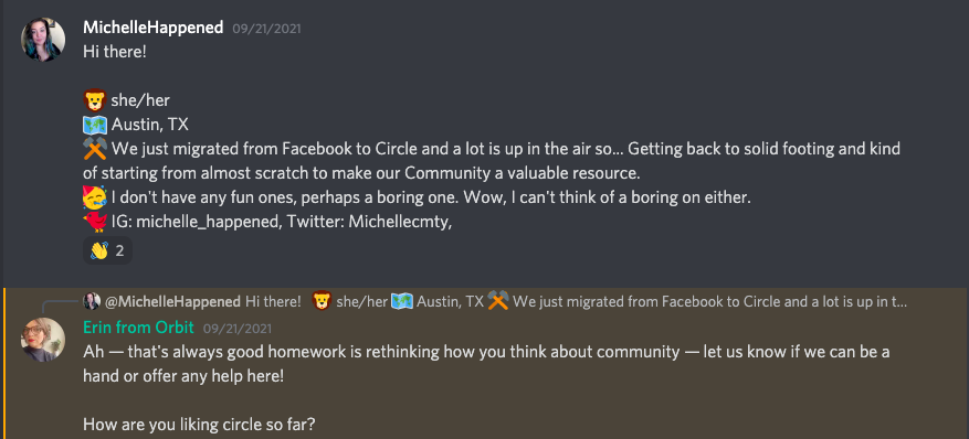 You can create a discussion channel dedicated to introductions or a ritual post that welcomes new members and encourages interaction. It’s great for a small win; every win makes churn less likely.