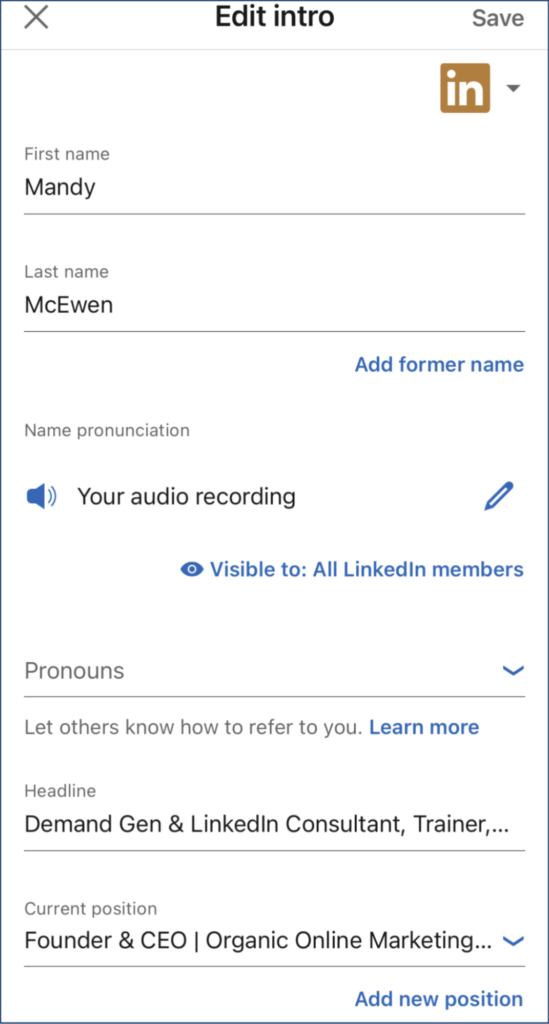 On LinkedIn mobile, you can add a 10-second audio note that introduces yourself. This was originally created for people to know how to pronounce your name.