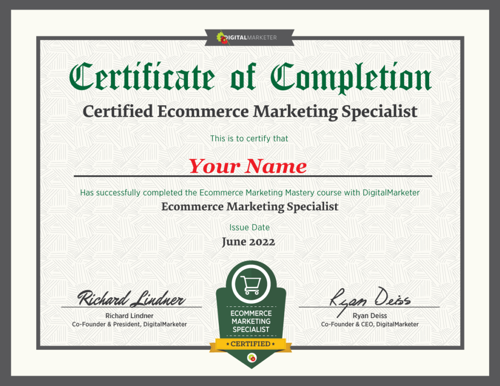 The certification is actually included for free, with the class itself making up 100% of the cost. Consider the personalized certification and badge an added bonus and proof of your distinguished achievement as a E-Commerce Marketing Specialist.