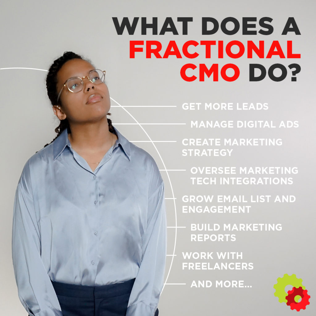 A fractional CMO has the same role as an executive. They should be managing your strategy as a whole and working on your marketing as a whole.